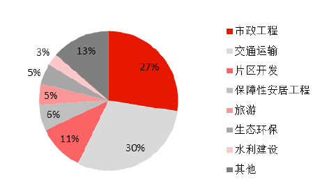根據《全國PPP 綜合信息平臺項目庫季報第4 期》,截至2016 年9 月末,按照要求審核納入PPP 綜合信息平臺項目庫的項目10,471 個,總投資額12.46 萬億元,其中執行階段項目共946 個,總投資額達1.56 萬億元,與6 月相比,執行項目數及項目投資額都在穩步增加。12.46 萬億總投資中,交通運輸、市政工程片區開發占比分列前三,分別達到3.71萬億、3.42 萬億、1.34 萬億。