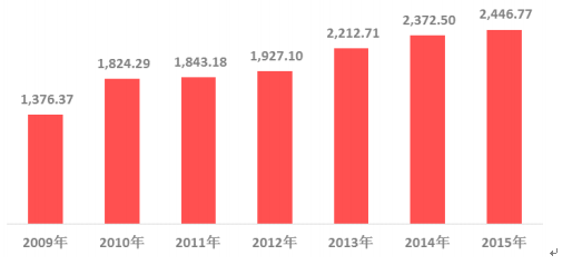 2009-2015年中國汽車銷量情況 (單位:萬量)