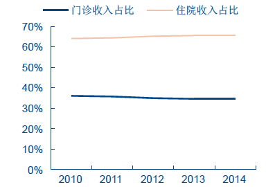 2014年我國公立醫(yī)院醫(yī)療收入占比