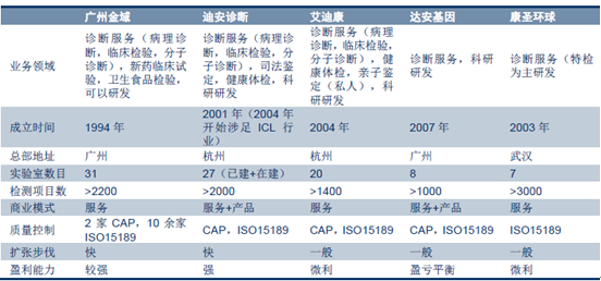 我國的ICL行業(yè)集中度相對較高,金域、迪安、艾迪康、達安基因的等ICL企業(yè)市場占有率達70%以上。目前,我國ICL機構在省會城市和重要的二線城市都基本已有布局,向地級、縣級市下沉料將是未來的發(fā)展趨勢。長期看,ICL企業(yè)依托其專業(yè)的檢測技術和人才,以診斷服務為核心支點,通過拓展健康管理業(yè)務(2B延伸到2C)或與CRO企業(yè)聯(lián)手打造中心實驗室等打造“診斷+”生態(tài)圈,將享有更高的發(fā)展天花板,或?qū)⒊蔀镮CL企業(yè)的重要發(fā)展方向。