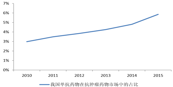 近年我國單抗藥物在抗腫瘤藥物市場中的占比走勢