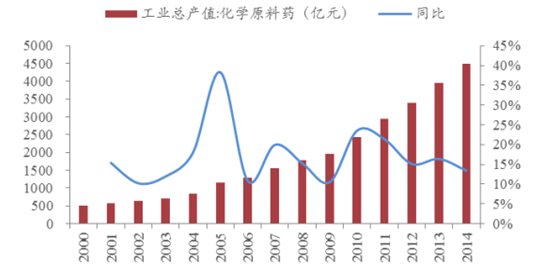 我國化學原料藥產值及同比增長率