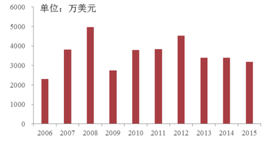 我國是世界最大的草酸生產 國和出口國,2015 年我國共出口草酸 3.93 萬噸,進口僅 123 噸,表觀消費量呈逐年增加態勢。