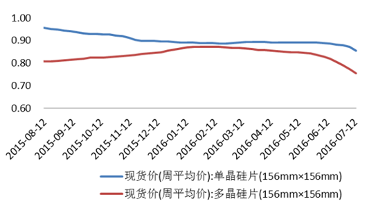 單晶硅片技術的不斷進步,成本也在不斷降低,多晶硅片的成本優勢越來越小。歷經前幾年的光伏市場波動和搶裝熱潮,多晶以其低價和產能優勢迅速搶占國內低端市場,而單晶以其品質優勢主要外銷歐美高端市場。然而,單晶比多晶擁有更多的技術進步空間,且技術進步速度不斷加快,導致單晶逐步在低端市場擴大應用,特別是隨著單晶產能的提升和硅片價格的持續下降,來自發電端投資回報意識的提升降低了盲目搶裝,單晶組件最近幾年在國內開始持續擴大裝機量,并在發電端實實在在的對比中逐步呈現優勢,使得國內外光伏主流企業和投資商開始注意到單晶硅片相比多晶硅片具有更高的性價比,單晶代表著未來的趨勢,這種認可度 2016 年以來開始呈現爆發之勢。