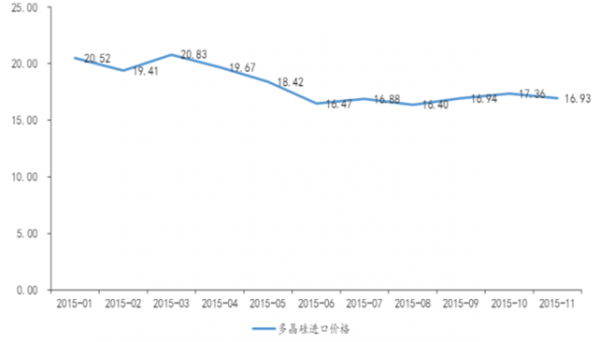 核心提示:2015年,我國(guó)金屬硅各品種平均價(jià)格下滑幅度均在10-15%之間,而且全年的最低價(jià)格在年底。下游產(chǎn)品價(jià)格快速下滑、全年供應(yīng)持續(xù)增加和海外市場(chǎng)需求減少是導(dǎo)致我國(guó)金屬硅市場(chǎng)供應(yīng)過(guò)剩、價(jià)格進(jìn)一步走低的主要原因。多晶硅價(jià)格走勢(shì)圖資料來(lái)源:公開(kāi)資料整2015年,我國(guó)金屬硅各品種平均價(jià)格下滑幅度均在10-15%之間,而且全年的最低價(jià)格在年底。下游產(chǎn)品價(jià)格快速下滑、全年供應(yīng)持續(xù)增加和海外市場(chǎng)需求減少是導(dǎo)致我國(guó)金屬硅市場(chǎng)供應(yīng)過(guò)剩、價(jià)格進(jìn)一步走低的主要原因。