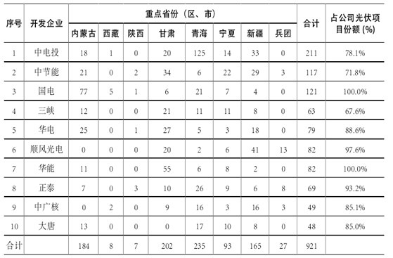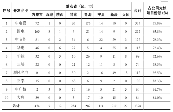 光伏電站開發企業項目備案(核準)容量 單位:萬千瓦