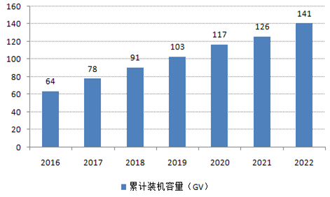 目前我國光伏產業規模持續擴大,行業發展總體趨好。伴隨著我國光伏行業的進一步發展,預計未來幾年,光伏行業市場容量將呈現出逐年增長態勢。據預測,到2022年我國光伏累計裝機容量將達141GW。