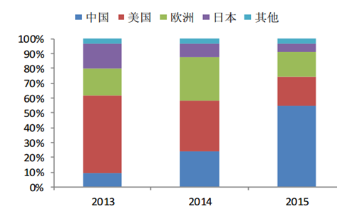 在全球新能源汽車爆發式增長的背景下,2015 年中國新能源汽車市場快速放量,全 年產量達 37.9 萬輛,同比增長超 300%,全球占比在 50%以上,超過美國一躍成為 全球新能源汽車第一大國。