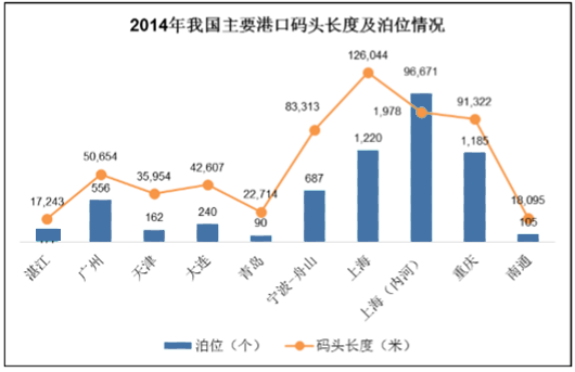 2014 年,我國(guó)主要港口碼頭長(zhǎng)度及泊位情況如下: