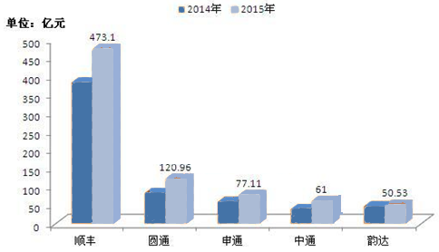 2015年國內(nèi)五大快遞公司營業(yè)收入情況