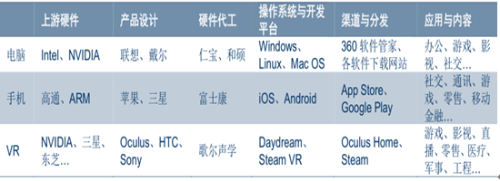 軟件穩步發展,爆點內容還需平臺搭橋。在軟件生態鏈中,操作系統和開發平臺是基石,開發者和用戶的粘性高,因此往往形成巨頭長期壟斷的格局。當前 VR 設備和 VR 內容的發展在初期階段遇到了“雞和蛋”的困境,造成當下“雞和蛋”困境的原因主要是因為 VR 開發平臺尚處于初級階段,生態環境不成熟。以 Oculus、Steam、Sony PS、雷蛇 OS VR 為首的主機端 VR 開發平臺的競爭格局已經形成。在移動端 VR 設備中,Google Daydream 有望復制手機時代 Android 的神話,成為移動端 VR 設備的通用。 2016 年暑期 AR 游戲Pokemon Go 引爆全球。VR 內容的爆點尚未出現,但目前已在醞釀之中。