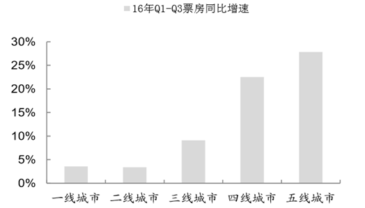 2016 年前 3 季度各城市級票房增速