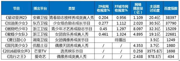 2016年偶像養(yǎng)成類綜蕊播出情況