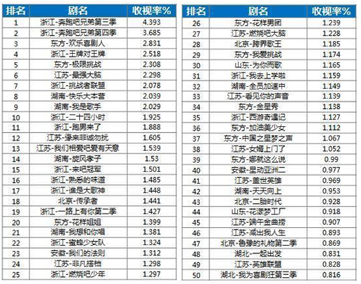TOP50綜藝節(jié)目一覽【29省網(wǎng)】