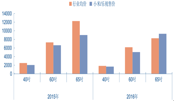 不同品牌 55 寸線上主銷型號均價對比(單位:億元)