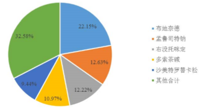 2014年前三季度國內(nèi)樣本醫(yī)院抗哮喘藥前十品種分布