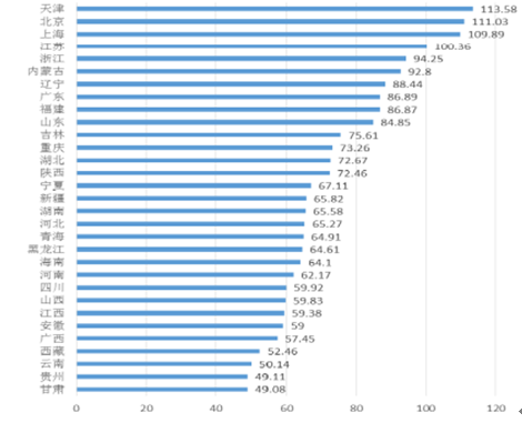 天津、北京、上海、浙江、江蘇、廣東、山東等 7 省市應用 效益指數均超過了 85,主要原因:一是在這些地區地區經濟比 較發達,勞動生產率和人均收入普遍比較高;二是 IT 企業云集, 技術創新比較活躍;三是隨著日益加重的霧霾,這些地區加快了對傳統“三高”產業的轉移和改造力度,節能降耗水平有了顯著改善。