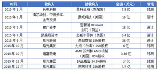 2015年中國IC行業重大并購情況