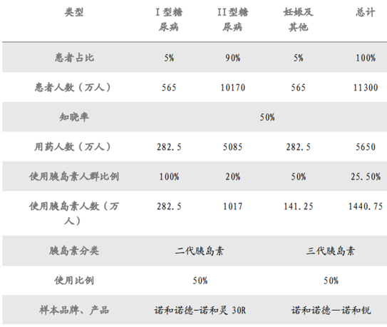 2015 年,我國(guó)糖尿病知曉率為 40%;2010 年,知曉率為 30%。預(yù)計(jì) 2020 年我國(guó)糖尿病知曉率達(dá)到 50%,測(cè)算屆時(shí)有 5650 萬(wàn)患者使用降糖藥。