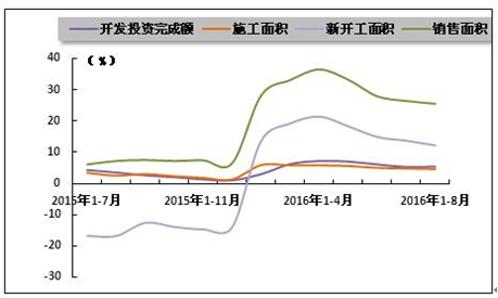 圖6 2015年7月-2016年8月全國房地產(chǎn)市場主要指標(biāo)變動趨勢