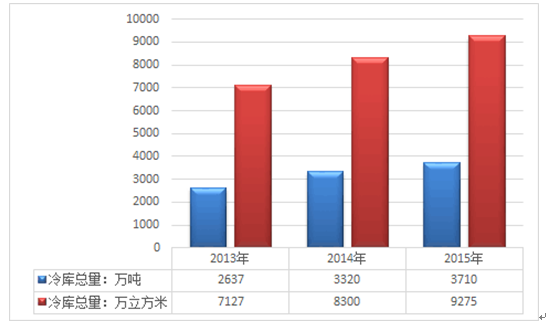 據中物聯冷鏈委不完全統計,2014年全國冷鏈物流百強企業收入總額為148.3億元,同比增長36.1%,收入總額不足冷鏈市場10%。2015年全國冷藏車增長14000輛左右,冷藏車保有量突破9萬輛,同比增長18.4%。2015年全國冷庫新增390萬噸,冷庫總保有量達到3710萬噸,折合9275萬立方米,同比增長11.76%。2015年,果蔬、肉類、水產品的冷鏈流通率分別達到22%、34%、41%,冷藏運輸率分別為35%、57%、69%。對比來看2010年發改委出臺的《農產品冷鏈物流發展規劃》提到的發展目標,已經完成并略有超出。