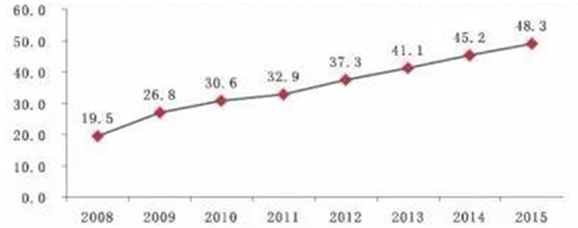 2008-2015年中國奶牛規模養殖比重變化