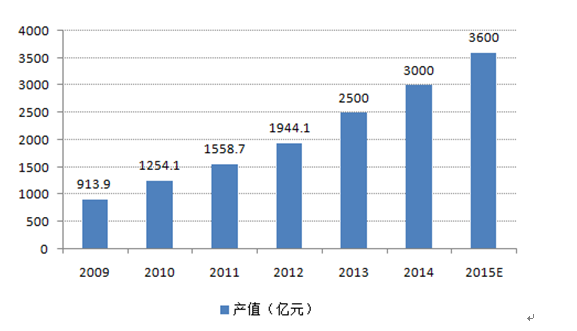 2009-2015年我國地理信息產(chǎn)業(yè)產(chǎn)值