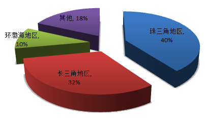 目前,我國光纖陶瓷插芯行業銷售主要集中在我國通訊產業、3G、4G生產集中區域,銷售區域分布如下圖所示: