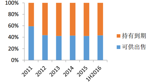 數(shù)據(jù)顯示,保險投資的債券資產(chǎn) 中,主要仍然以持有到期為主。因此,長期的利率下行將毫無疑問壓縮保險債券利 差,這對公司的投資業(yè)績將造成較大壓力。截止16年半年報,最新數(shù)據(jù)顯示,4家上 市保險公司的持有到期債券占比56.8%-82.9%,其中新華保險持有到期債券比例提 升明顯,由62.4%提升至74.4%。