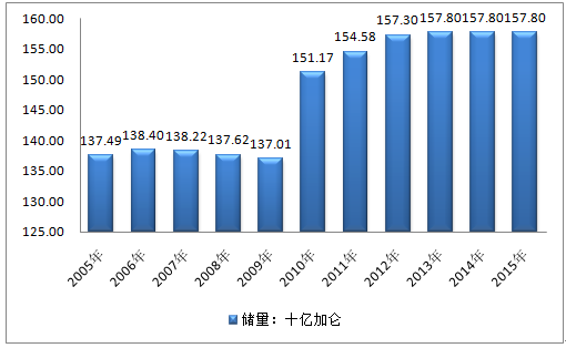 核心提示:2005年伊朗石油儲量137.49十億加侖,2010年伊朗石油儲量151.17十億加侖,2015年伊朗石油儲量157.80十億加侖。2005-2015年伊朗石油儲量走勢圖(單位:十億加侖) 資料來源:BP2005年伊朗石油產(chǎn)量207.72005年伊朗石油儲量137.49十億加侖,2010年伊朗石油儲量151.17十億加侖,2015年伊朗石油儲量157.80十億加侖。