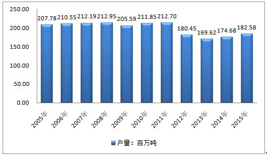 2005年伊朗石油產(chǎn)量207.78百萬噸,2010年伊朗石油產(chǎn)量211.85百萬噸,2015年伊朗石油產(chǎn)量182.58百萬噸。