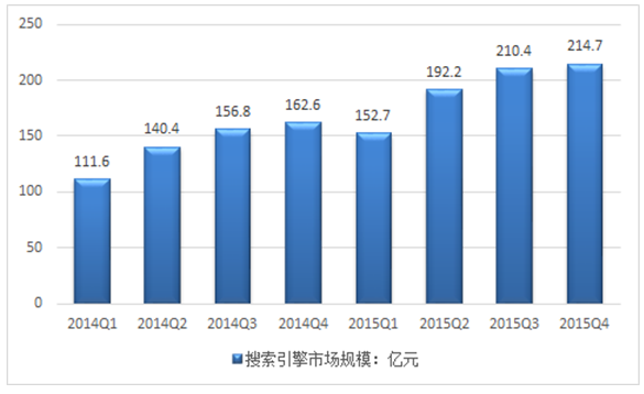 2014-2015年搜索引擎各季度市場規(guī)模走勢圖