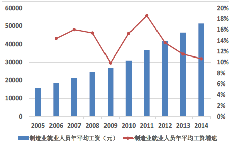 制造業就業人員工資增幅處于高位