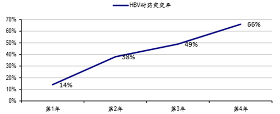 慢性乙肝患者需要長期服藥。與一般藥品相比,抗乙肝病毒藥物價格普遍較高,患者治療乙肝的平 均月費用約 550 元。通常情況下,乙肝患者需至少持續服藥 2 年左右時間才能較穩定的控制病情,但目前,我國慢性乙肝患者堅持長期服藥的依從性并不高。根據《中國慢性乙肝防治指南》中的統 計數據,在口服抗乙肝藥物患者中,約 63%的患者出現自行停藥現象,其中約 57%的患者病情加重。患者自行停藥,不僅不能起到治療作用,而且還可能加速乙肝病毒耐藥性的發生,甚至使病毒