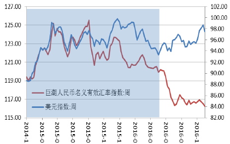 人民幣有效匯率指數與美元指數