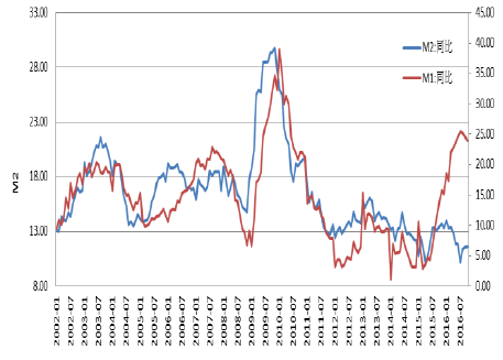 2002-2016年M1、M2剪刀差