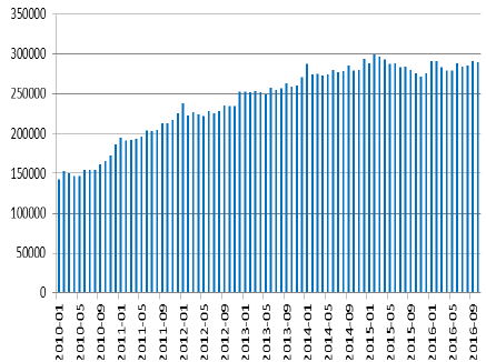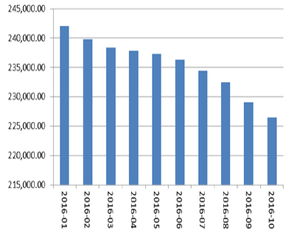 2010-2016年中國基礎貨幣余額
