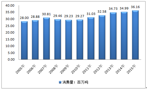 2005年馬來西亞石油消費量28.00百萬噸,2010年馬來西亞石油消費量29.27百萬噸,2015年馬來西亞石油消費量36.16百萬噸。