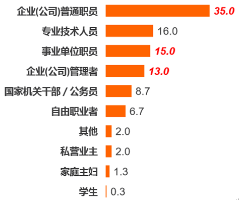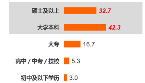 他們擁有較高的學歷,多為企事業(yè)單位職員91.7%擁有大專及以上學歷