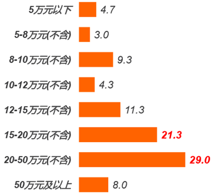 核心提示:已婚年輕男性是新能源汽車的主體用戶,平均年齡為36.8歲,男性點68%,女性占32%。人群年齡分布(%)婚姻狀況(%)55%為 三口之家他們擁有較高的學歷,多為企事業(yè)單位職員91.7%擁有大專及以上學歷人群職業(yè)分布(%)他們有一定的經(jīng)濟基礎已婚年輕男性是新能源汽車的主體用戶,平均年齡為36.8歲,男性點68%,女性占32%。