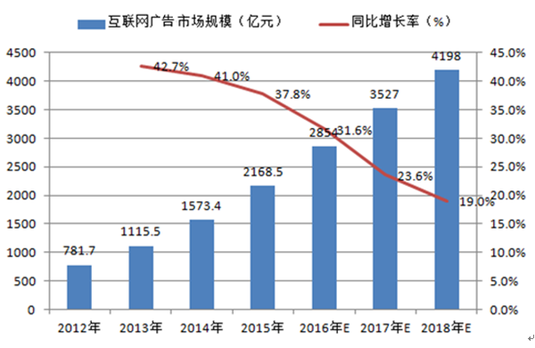 2015年中國互聯網廣告收入超過2000億元,同比增長35.9%,而其中約50%以上來源于移動互聯網廣告收入。與此同時,截至2015年12月,我國移動智能終端規模達12.8億臺,智能終端設備滲透率已經超過90%。