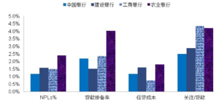 為銀行業已經形成初步的立體式規模,即大型商業銀行、股份制、城 商行以及互聯網金融機構。四大行資產質量比較