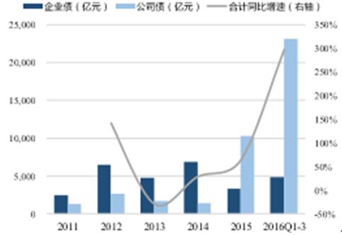 2016 年 前三季度,債券融資規模激增,企業債、公司債發行規模分別為 4849、 23155 億元,同比分別大幅增長 110.2%、390.4%,企業債發行規模已超 過 2015 年全年,公司債發行規模已遠超 2015 年全年,延續爆發增長態 勢。一級市場債券融資火爆推動券商債券承銷投行業務高速增長,上市 券商中,國泰君安、中信、招商債券承銷規模位居前三,市場份額均超過 5%,其中國泰君安市場份額高達 7.45%。