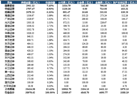 2016Q1-3 上市券商債券承銷排名(合并口徑)