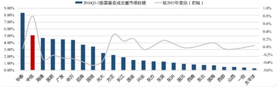2016Q1-3 上市券商經紀業務市場份額及變動