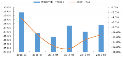 2016 年原煤產(chǎn)量持續(xù)下滑