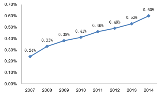 2007-2014 年中國彩票銷售額占 GDP 比重