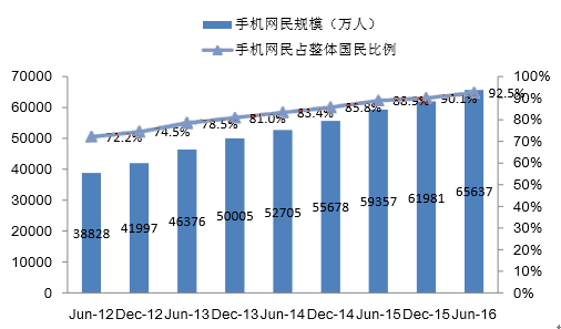 中國手機網民規模及其占網民比例