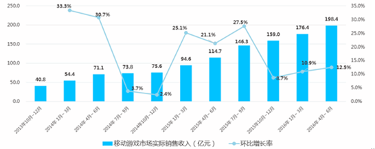 中國移動游戲市場實際銷售收入