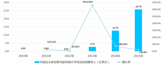 2016年中國移動游戲市場實際銷售收入及海外市場實際銷售收入分析